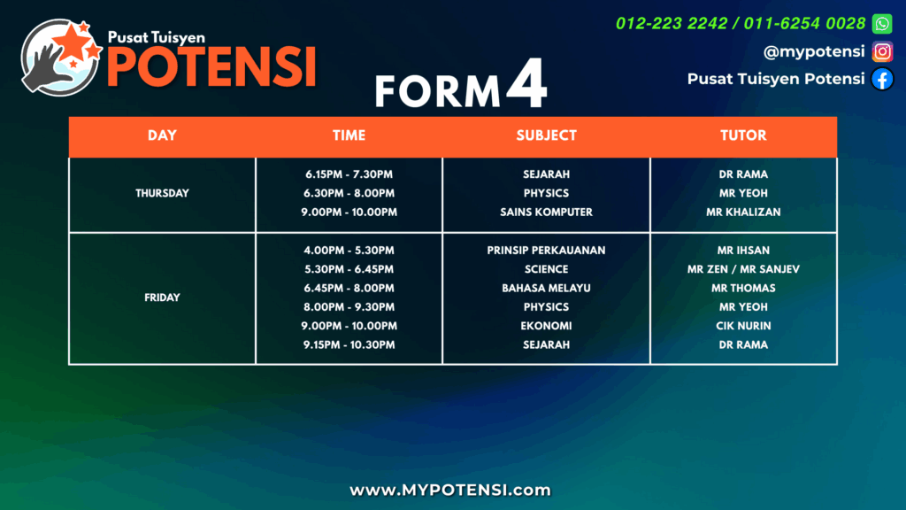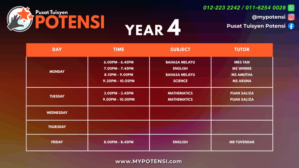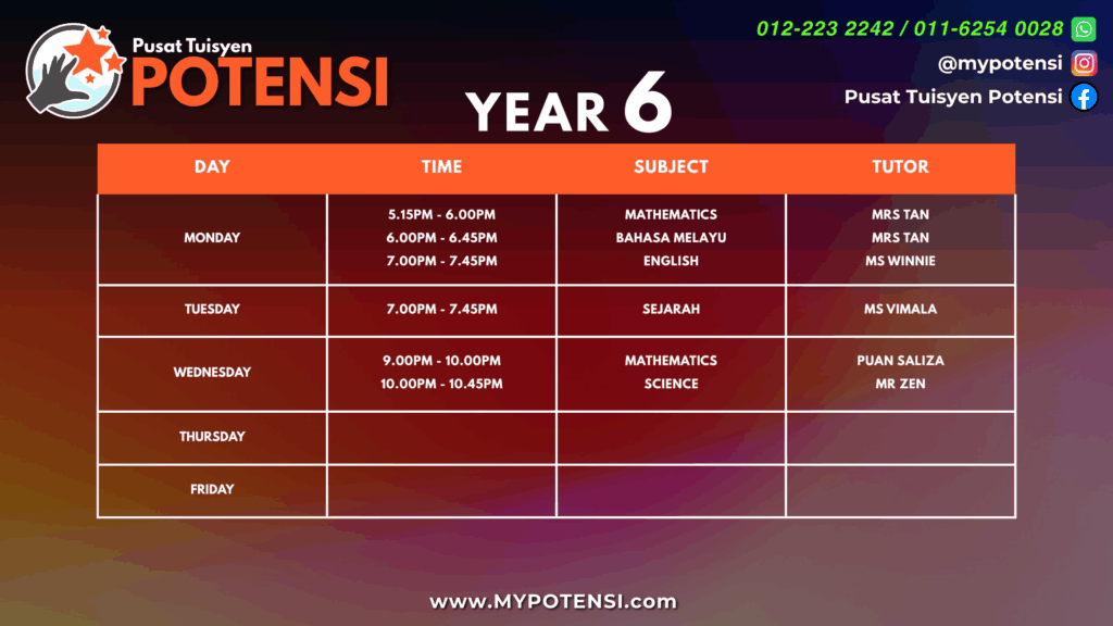 Check out our latest timetable for Primary, Secondary and IGCSE classes. Find the perfect schedule for your child whether for in-class or online learning.